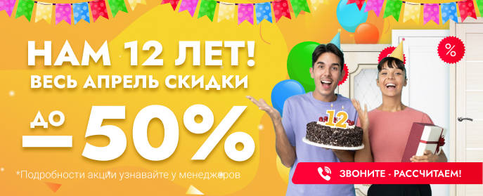 Весь апрель "ГИГАНТ-ДВЕРИ" дарит покупателям скидки до -50%. Воспользуйтесь удачным моментом, чтобы выгодно купить и установить двери.