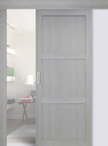 Раздвижная дверь включает в себя одну или две одинаковые створки. Они плавно, поступательно двигаются при открывании параллельно той вертикальной поверхности, на которой они установлены.