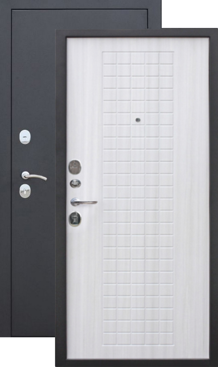 Качественная российская дверь со стильной внешней отделкой муар черный и красивой декоративной панелью толщиной 8 в цвете ясень белый. Прекрасно подойдет для установки в квартиру. Надежная модель, которая прослужит долгие годы.