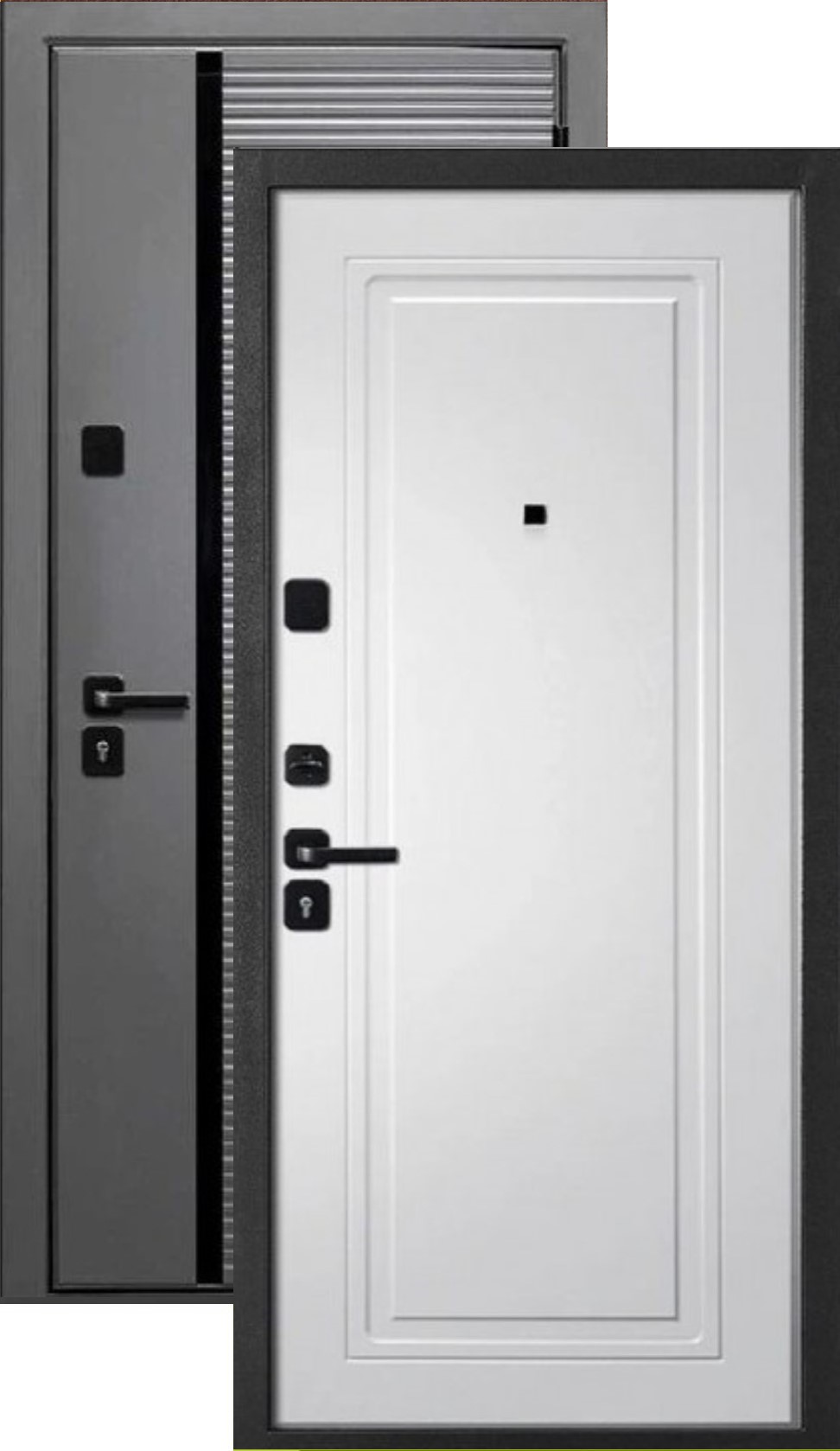 Качественная российская дверь со стильной внешней отделкой черный муар/графит и красивой декоративной панелью толщиной 10 в цвете ясень белый. Прекрасно подойдет для установки в квартиру. Надежная модель, которая прослужит долгие годы.
