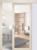Такая дверь включает в себя одну или две одинаковые створки. Они плавно, поступательно двигаются при открывании параллельно той вертикальной поверхности, на которой они установлены.