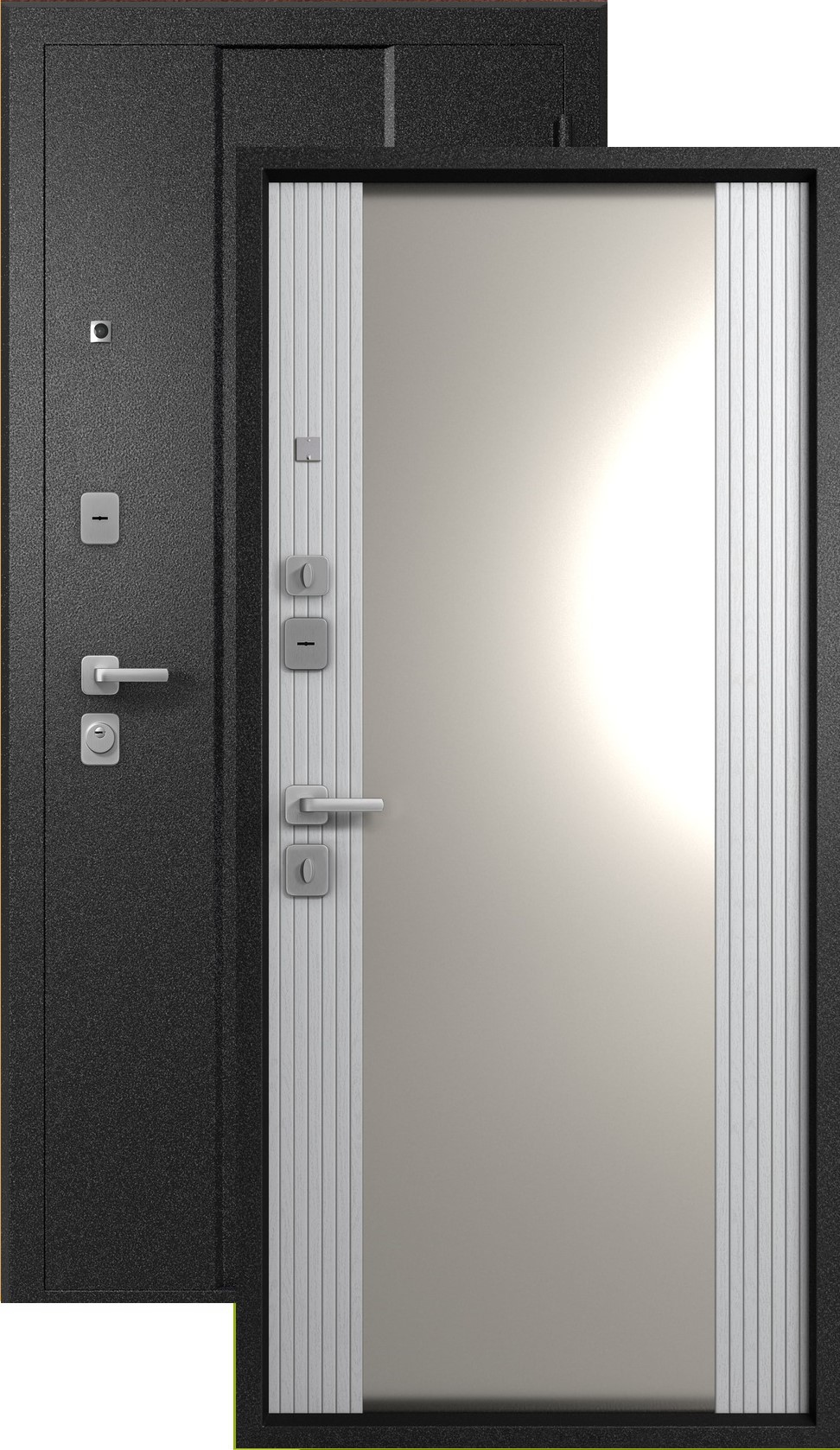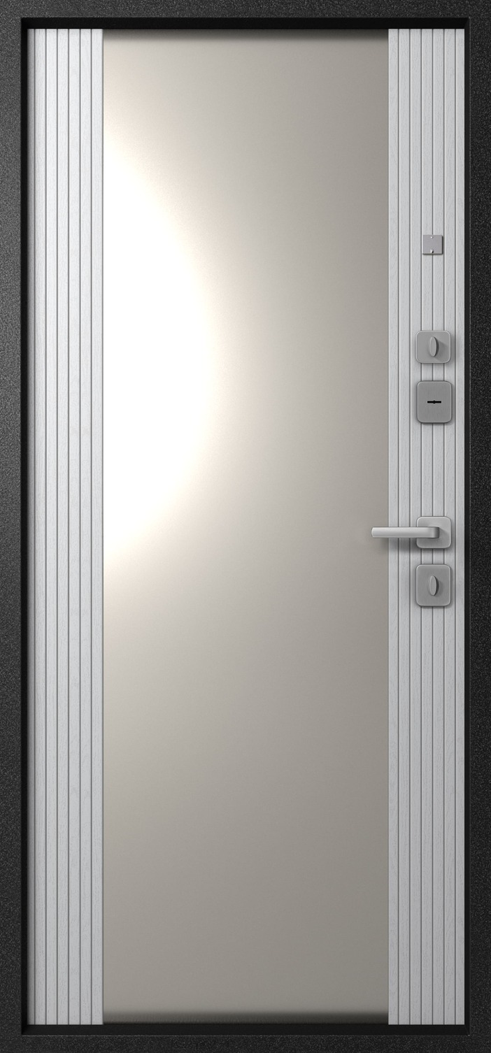 Повышенной надежности российская дверь с большим зеркалом на внутренней панели. Прекрасно подойдет для установки в квартиру. Солидная модель, которая хорошо защитит и подчеркнет статус.
