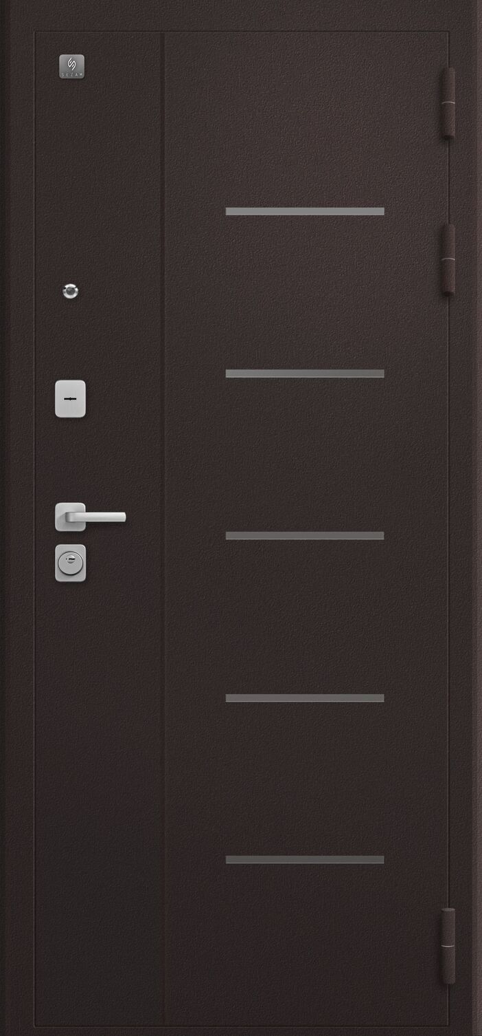 Дверь имеет хорошую прочность из-за толщины металла 1,4 мм. Оснащена двумя надежными замками, минимум один из которых имеет высокий третий класс взломостойкости по ГОСТ 5089-2003 и обладает повышенными охранными свойствами. Есть врезная броненакладка, защищающая цилиндровый замок от высверливания. Она утоплена в дверное полотно, поэтому ее практически невозможно сбить. Есть ночная задвижка — дополнительная защита от взлома. Никто не сможет зайти, вскрыв замок, когда вы дома.