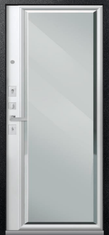 Повышенной надежности российская сейф-дверь с большим зеркалом на внутренней панели со стильной внешней отделкой муар графит. Прекрасно подойдет для установки в квартиру. Солидная модель, которая хорошо защитит и подчеркнет статус.