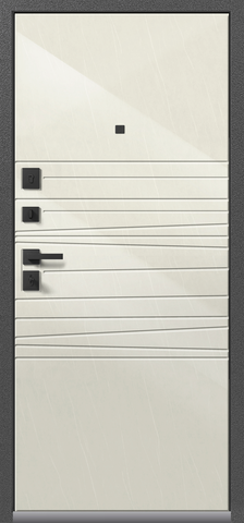 Повышенной надежности российская сейф-дверь со стильной внешней отделкой антрацит муар/кашемир графит и красивой декоративной панелью толщиной 16 в цвете мрамор светлый (глянец). Прекрасно подойдет для установки в квартиру. Солидная модель, которая хорошо защитит и подчеркнет статус.