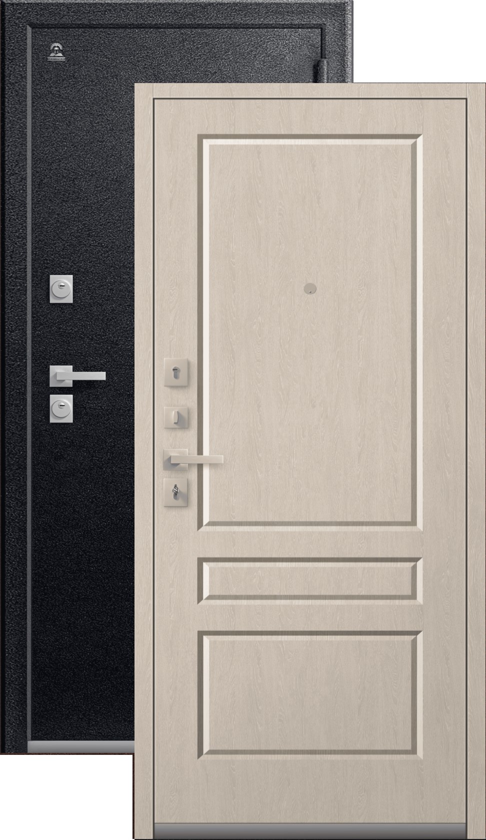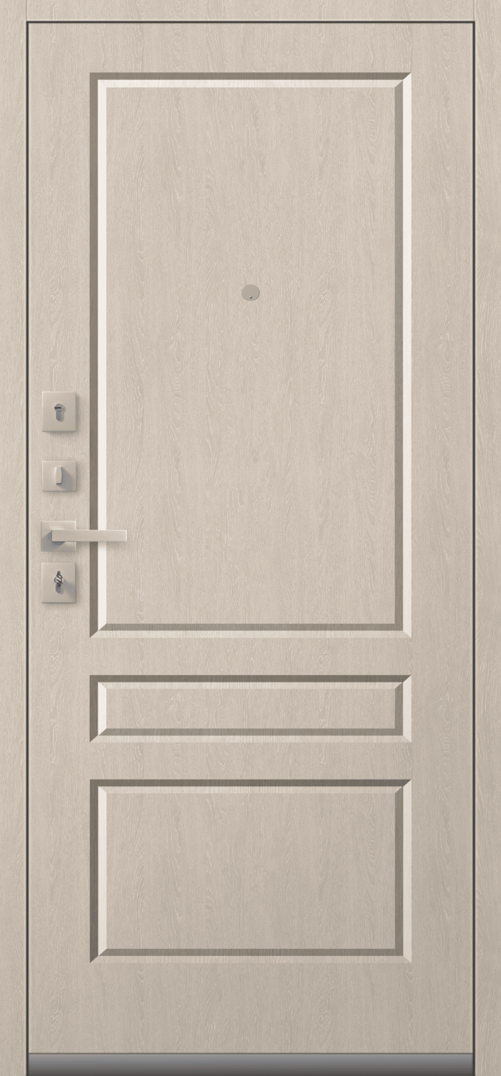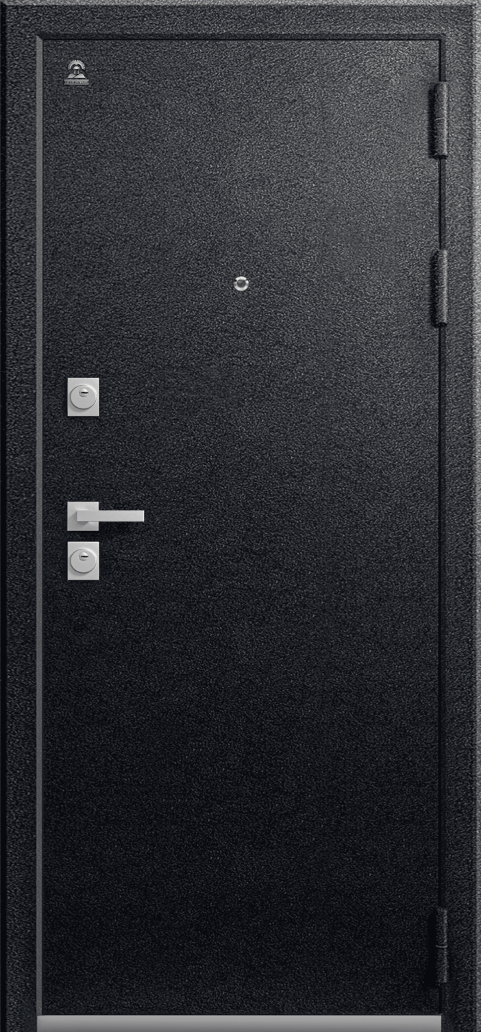 Имеет очень высокую прочность, благодаря толстой стали 2 мм. Оснащена двумя надежными замками, минимум один из которых имеет высший класс взломостойкости по ГОСТ 5089-2003 (4 класс). Есть врезная броненакладка, защищающая цилиндровый замок от высверливания. Она утоплена в дверное полотно, поэтому ее практически невозможно сбить. Есть ночная задвижка — дополнительная защита от взлома. Никто не сможет зайти, вскрыв замок, когда вы дома.