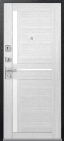 Повышенной надежности российская дверь со стильной внешней отделкой муар черный и красивой декоративной панелью толщиной 16 в цвете сноу. Прекрасно подойдет для установки в квартиру. Солидная модель, которая хорошо защитит и подчеркнет статус.