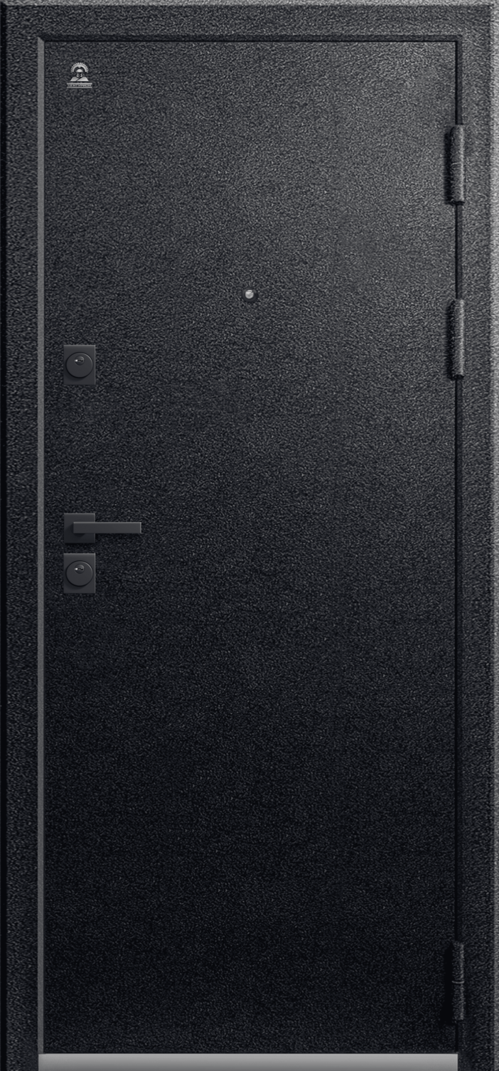 Имеет очень высокую прочность, благодаря толстой стали 2 мм. Оснащена двумя надежными замками, минимум один из которых имеет высший класс взломостойкости по ГОСТ 5089-2003 (4 класс). Есть врезная броненакладка, защищающая цилиндровый замок от высверливания. Она утоплена в дверное полотно, поэтому ее практически невозможно сбить. Есть ночная задвижка — дополнительная защита от взлома. Никто не сможет зайти, вскрыв замок, когда вы дома.