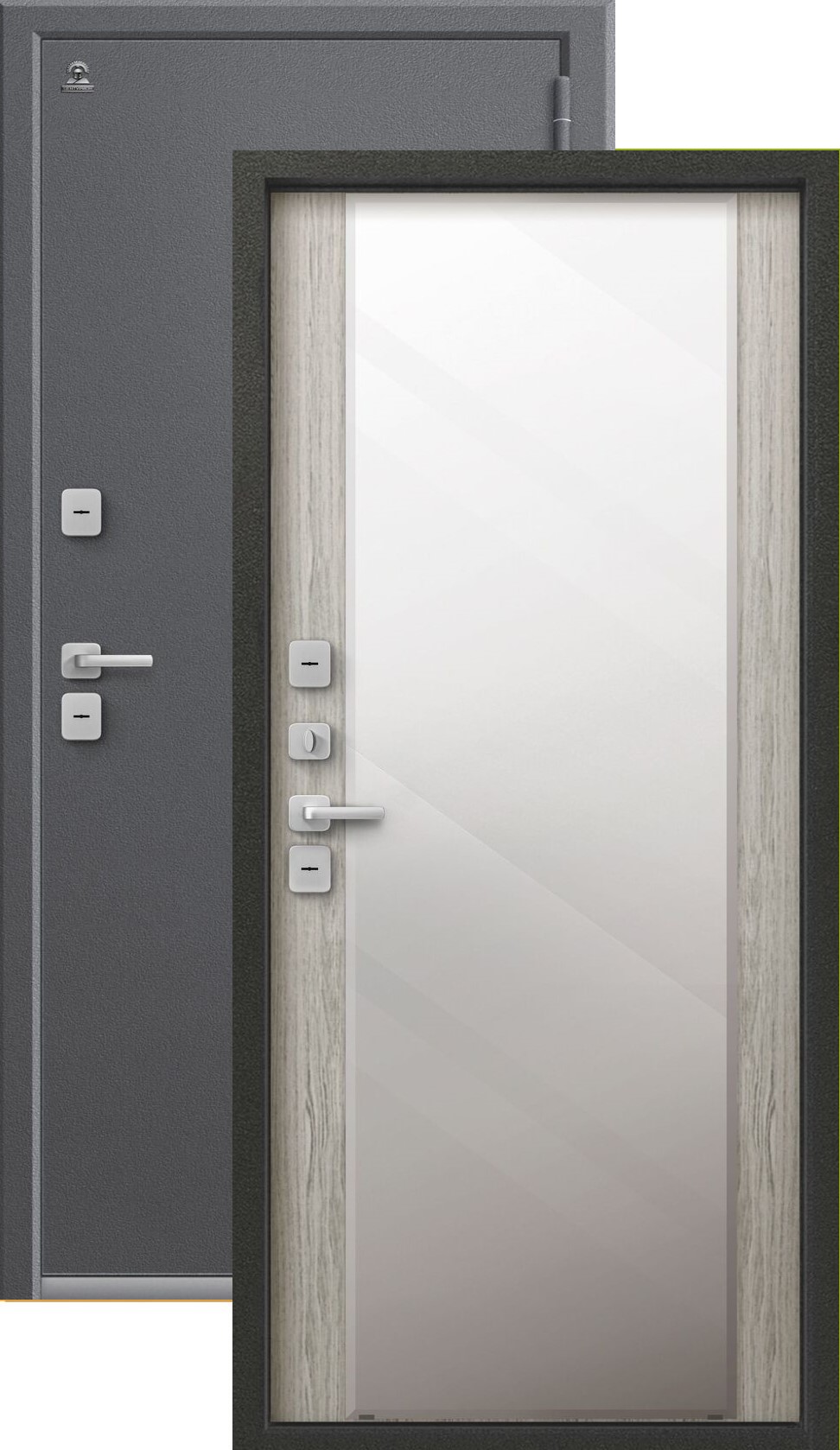 Термодверь входная Центурион Т-6/1 (2026) зеркало, 2 замка, 1,4 мм металл, (серый букле+полярный дуб)